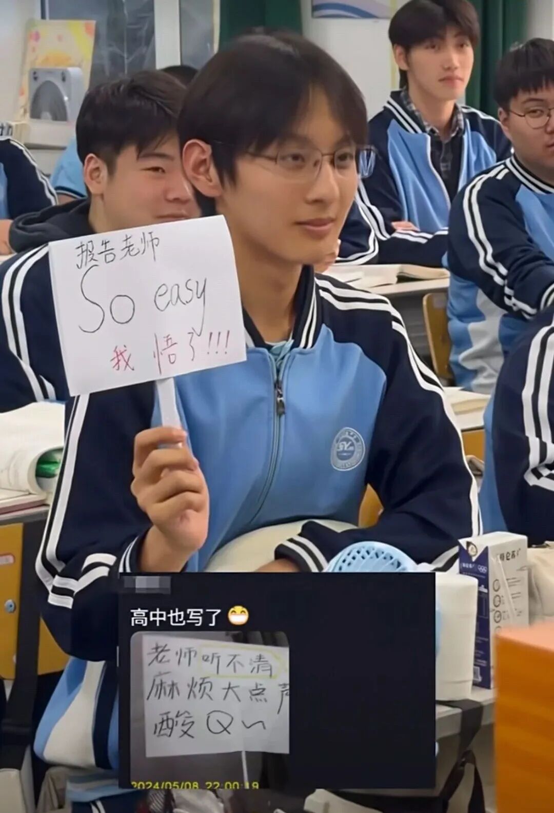 课堂上也能“发弹幕”了?据报道,近日,沈阳一中学课堂开启“弹幕模式”,令人耳目一新。学生举牌和老师互动:“没听懂,求重讲”“So easy!我悟了”“老师,想上厕所”……充满趣味性的互动,让公众印象中稍显严肃的课堂不再“沉闷”。