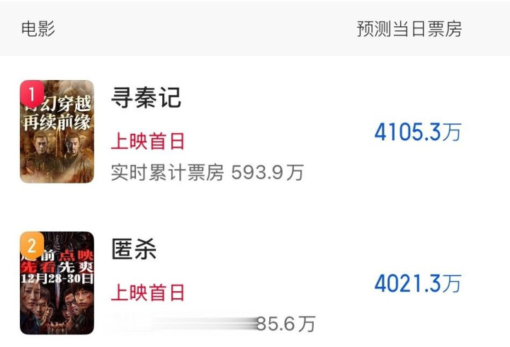 这跨年档的电影大战,是不是已经让你眼花缭乱啦?可我瞅着,《寻秦记》这波操作,简直太有看头了!首日预测票房竟然干过《匿杀》,这可真是让人没想到啊。为啥《寻秦记》能这么牛呢?咱接着往下唠唠。